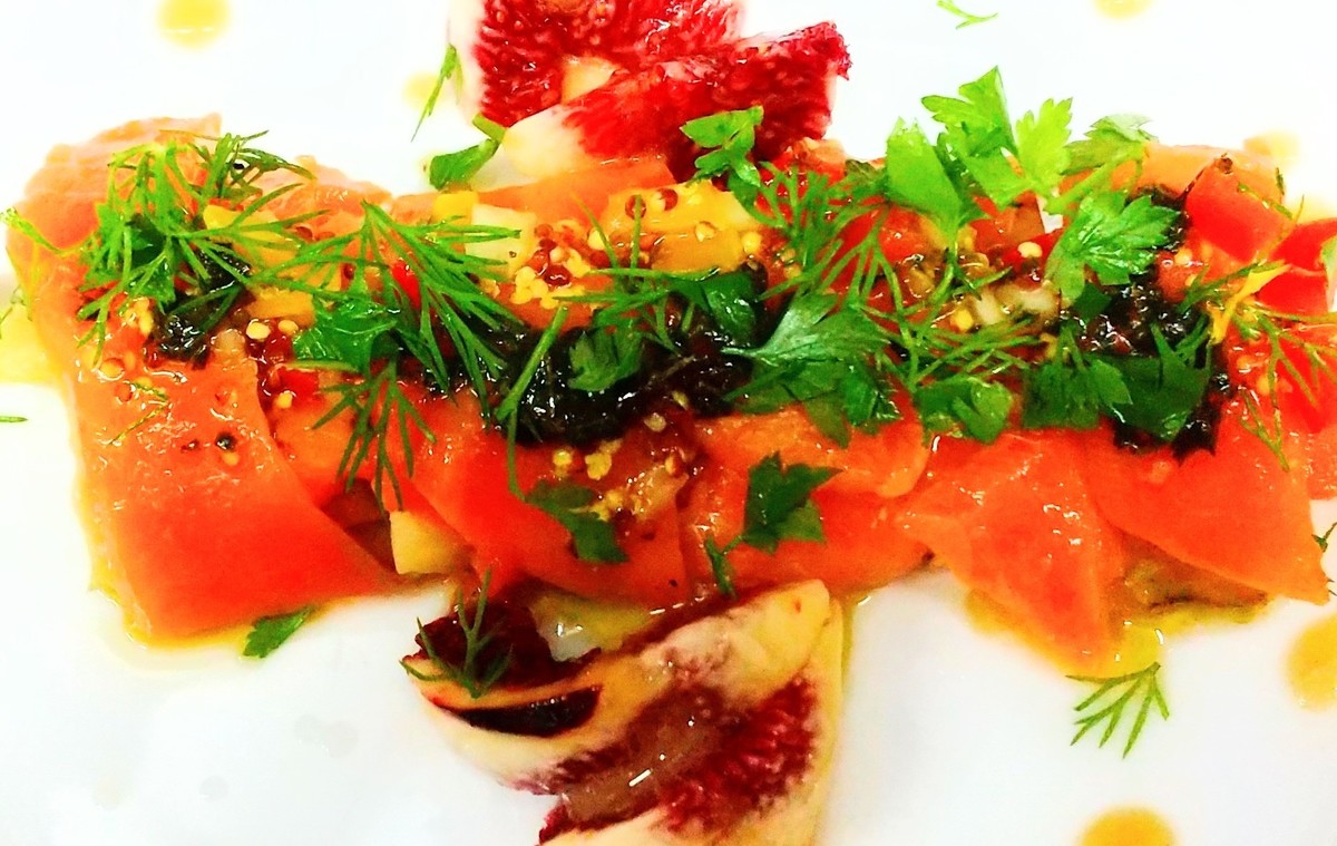Marinated fresh fish Garden vegetable salad