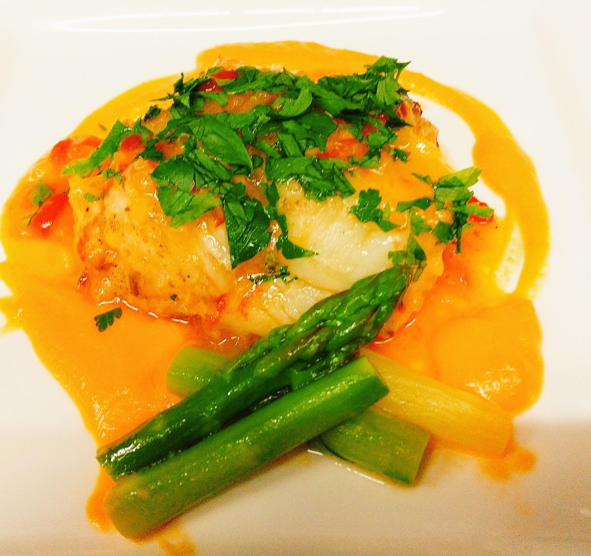 Flatfish meuniere carrot creme and onion sauce
